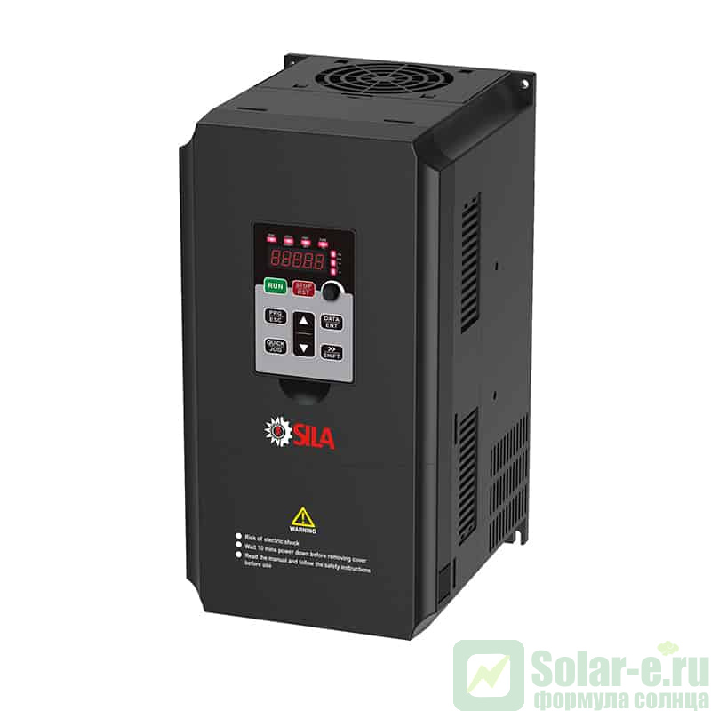 Трехфазный частотный преобразователь SILA A11G/15P-T4 управляет частотой оборотов электродвигателя мощностью 11 кВт.
