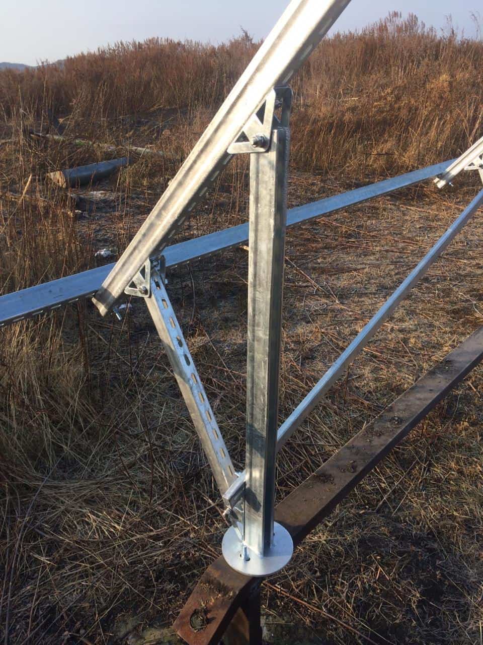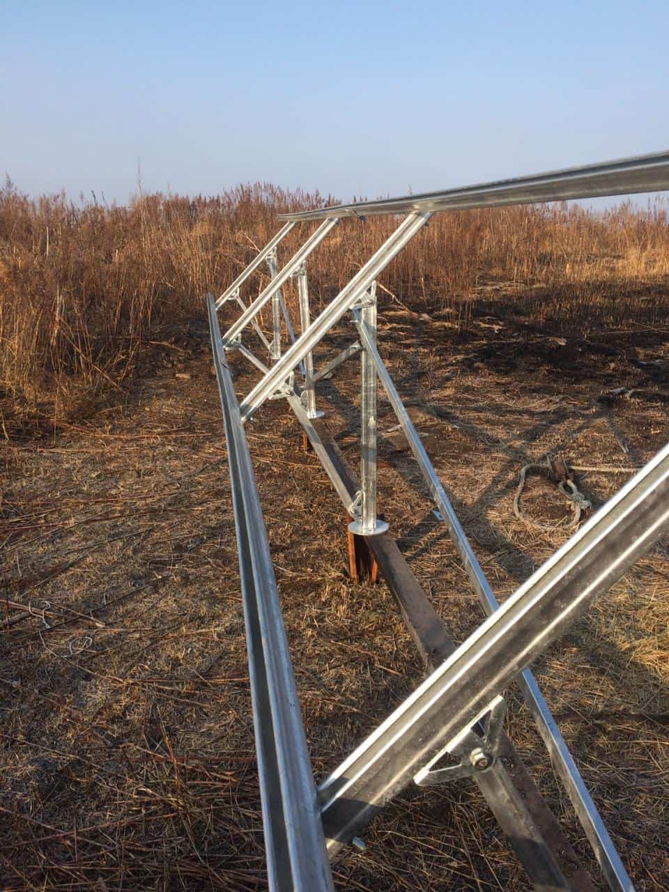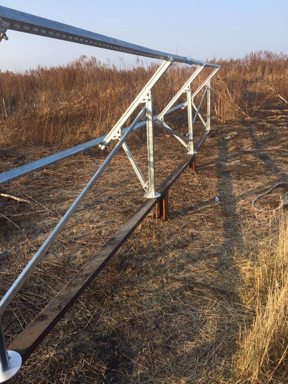 Данный комплект предназначен установки солнечных батарей на земле в один ряд под углом 45 градусов к горизонту ( с двумя рядами опорных ног ).