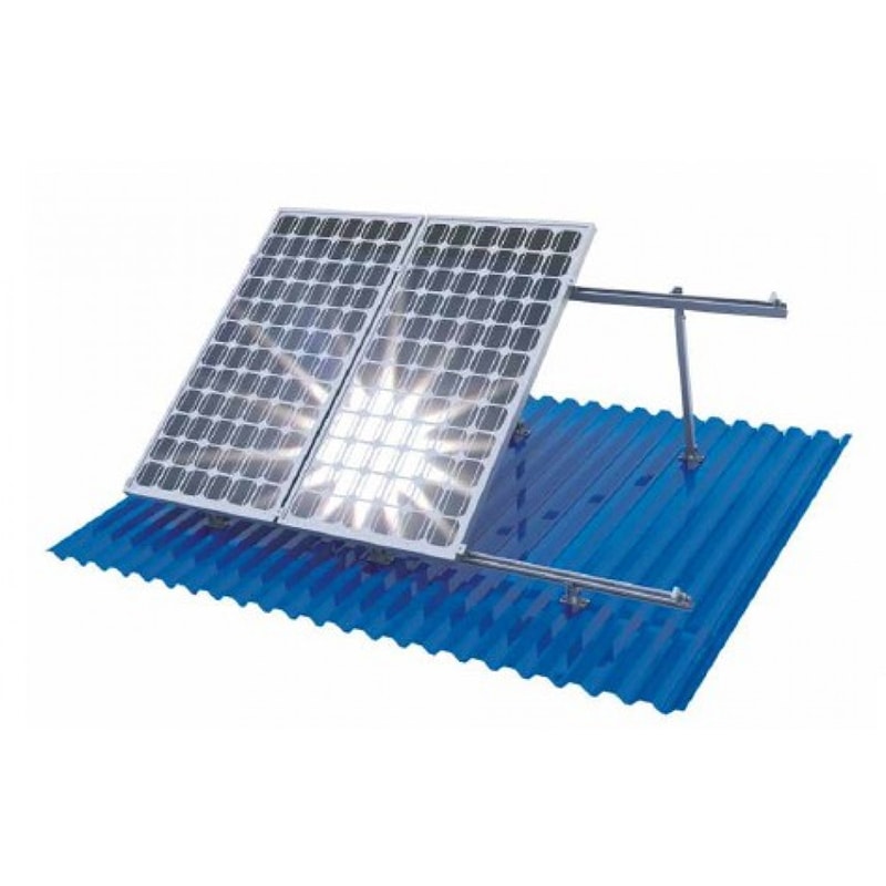 Данный комплект предназначен для монтажа солнечных батарей на плоской или наклонной поверхности (земле, крыше из мягкой черепицы либо металлочерепицы) в один ряд. Регулируемый угол наклона ( от 15 до 30 градусов ), позволяет эффективней использовать батареи, за счет изменения площади воздействия прямых солнечных лучей.